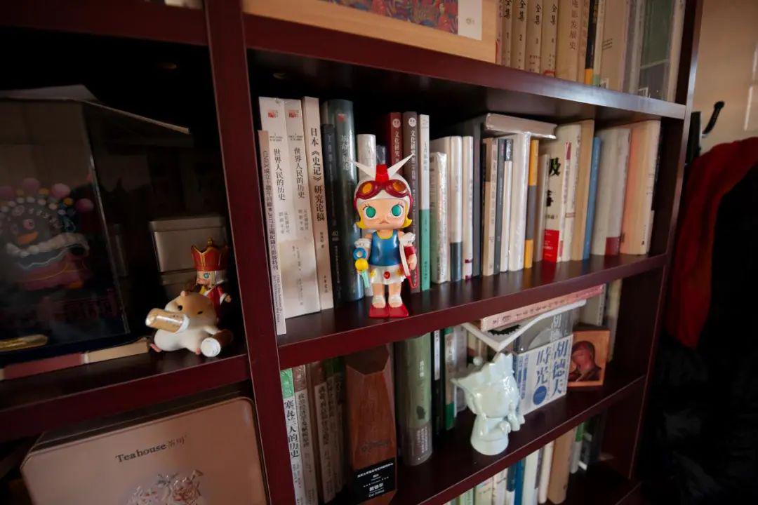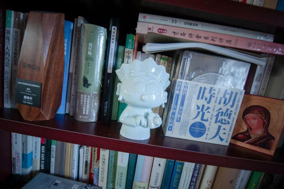推开门,映入眼帘的是从地板延伸到天花板的一整面书墙。书架上摆放着不同时代、不同领域的各种书籍,有几层还点缀着几只精致可爱的小摆件。戴锦华老师笑着介绍说,“我的书房其实是一个‘混沌’。”