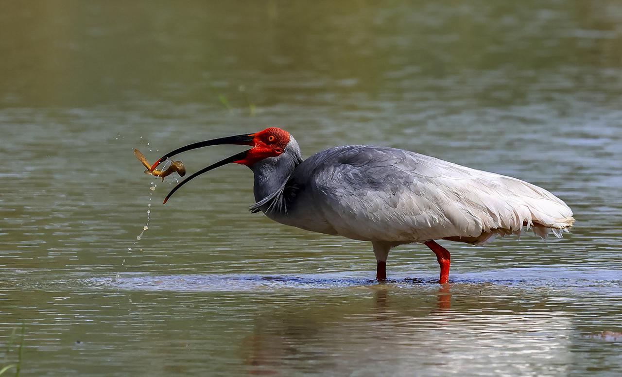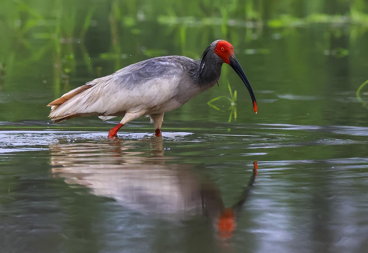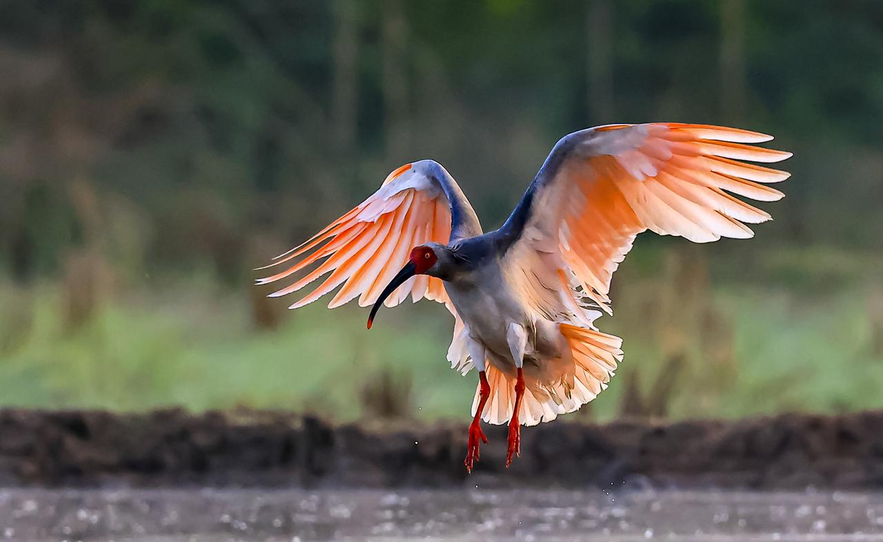 朱鹮喜欢栖息在开阔的水田、沼泽地以及山区溪流附近。它们通常以小鱼、泥鳅、蛙类、昆虫等为食,在浅水中悠然踱步,用那敏锐的长嘴迅速捕捉猎物。朱鹮生性较为宁静,飞行时姿态优雅,振翅缓慢而有节奏,展现出一种独特的美感。